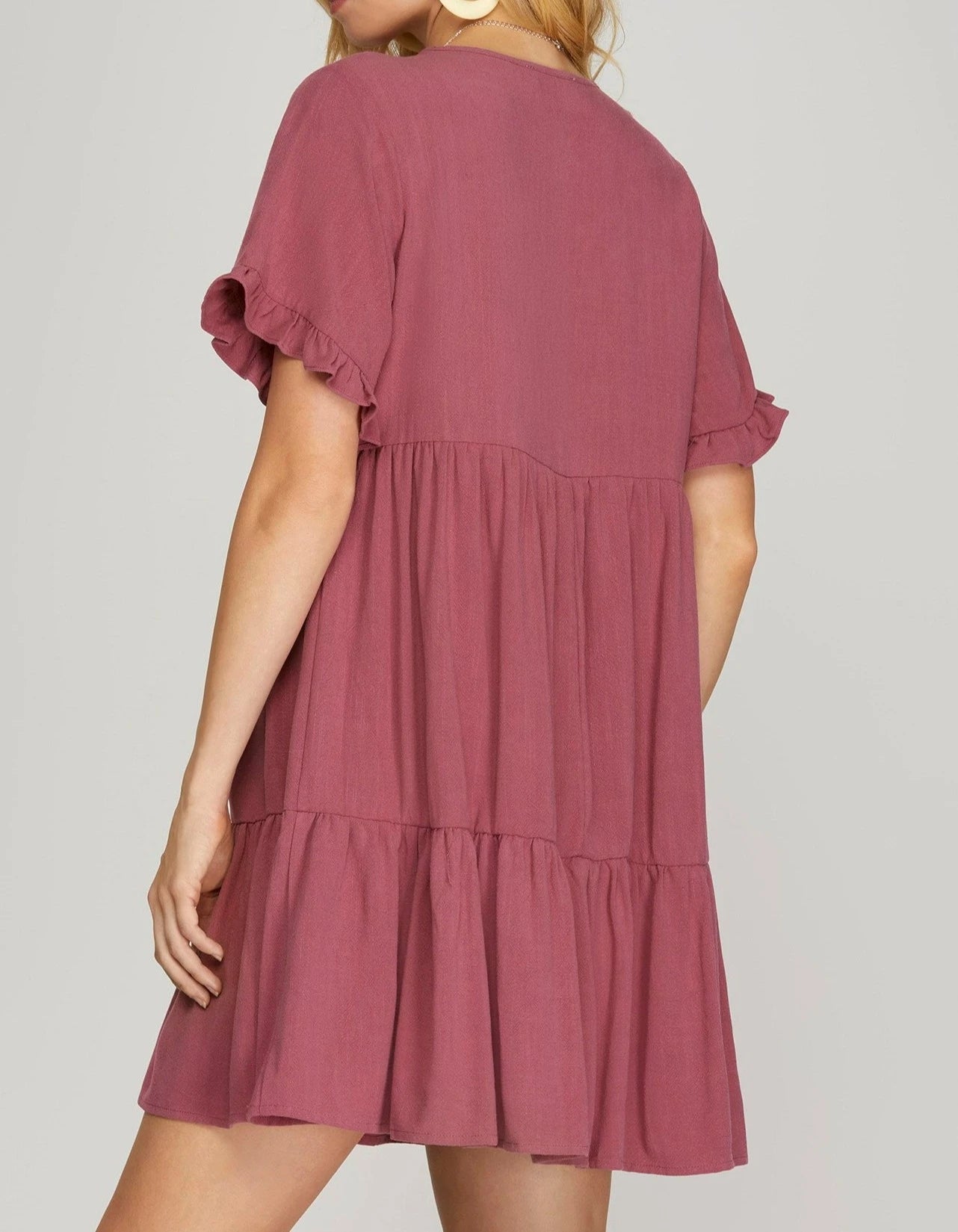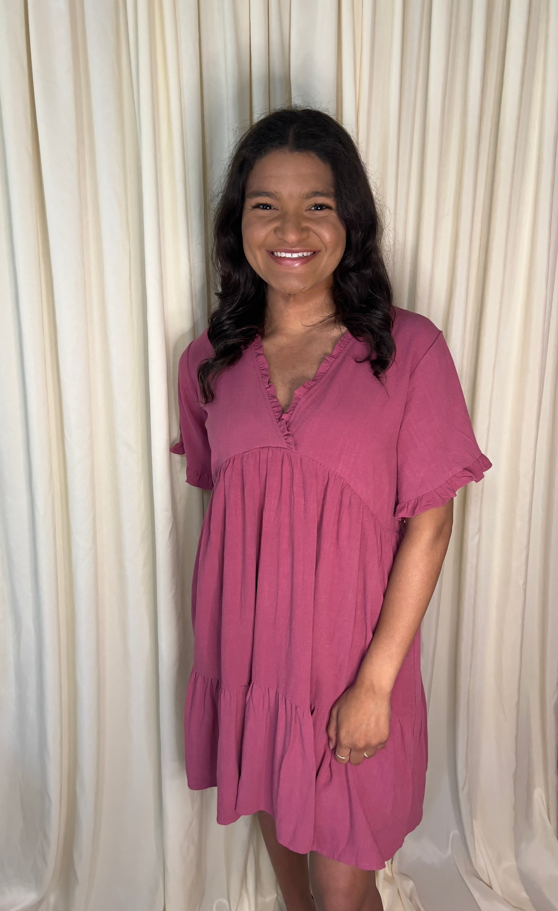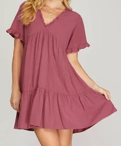 Drop shoulder V Neck Woven Dress